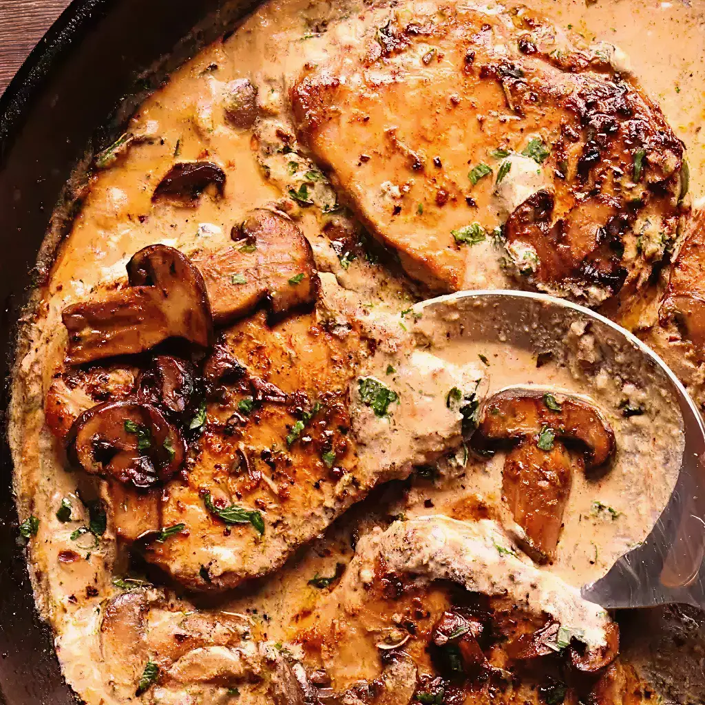 Garlic and mushrooms come together in this savory dish of Garlic Mushroom Pork Chops. The tender pork chops are pan-seared and smothered in a rich garlic mushroom sauce, creating a flavorful and comforting meal. Perfect for any night of the week, this dish pairs wonderfully with mashed potatoes or steamed vegetables.