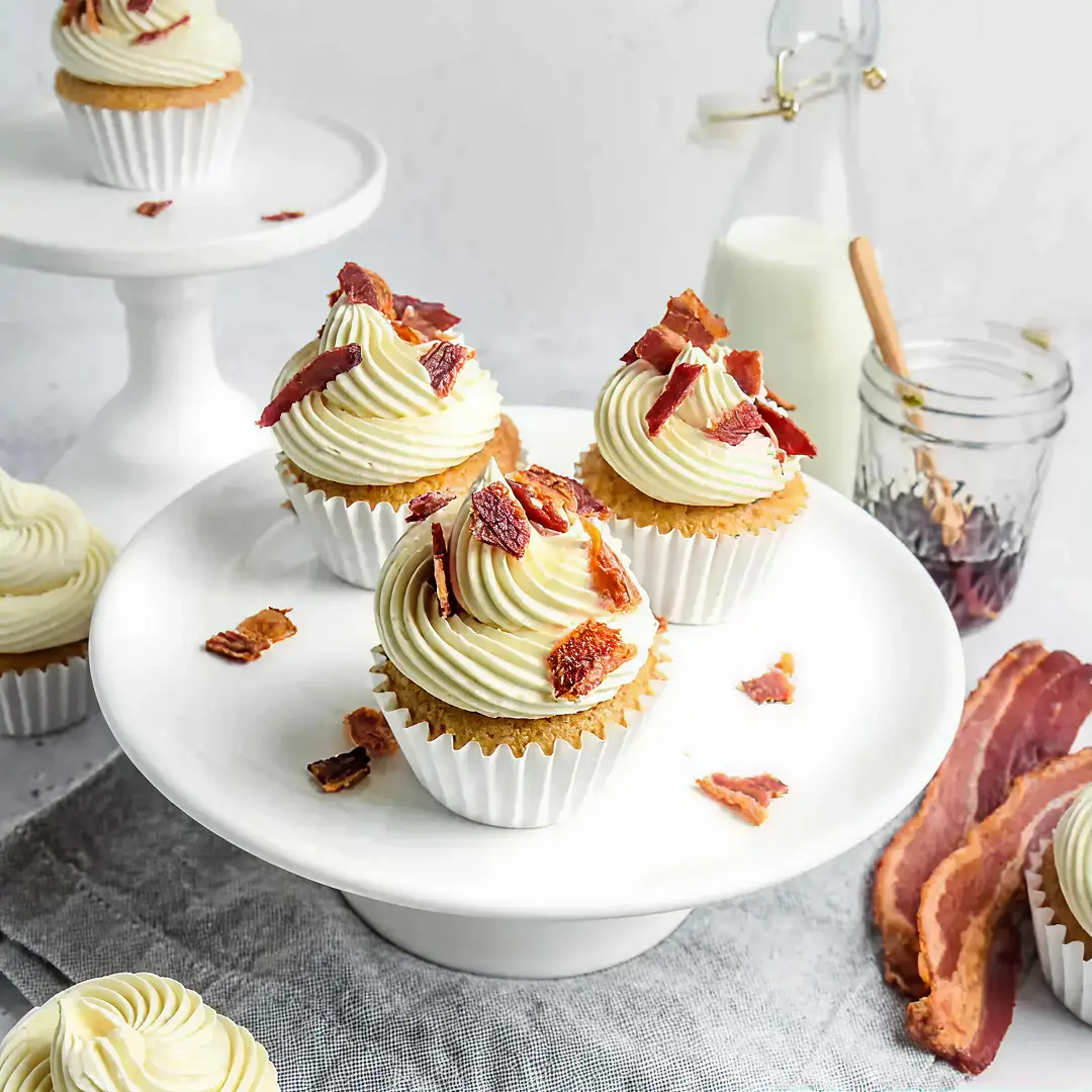 Satisfy your sweet and savory cravings with these Swift Bacon Maple Cupcakes. Fluffy cupcakes are infused with rich maple flavor and topped with crispy pieces of Swift Bacon, creating the perfect balance of sweet and salty in every bite. Ideal for dessert or a unique brunch treat, these cupcakes offer an irresistible combination of flavors that will have everyone asking for seconds.